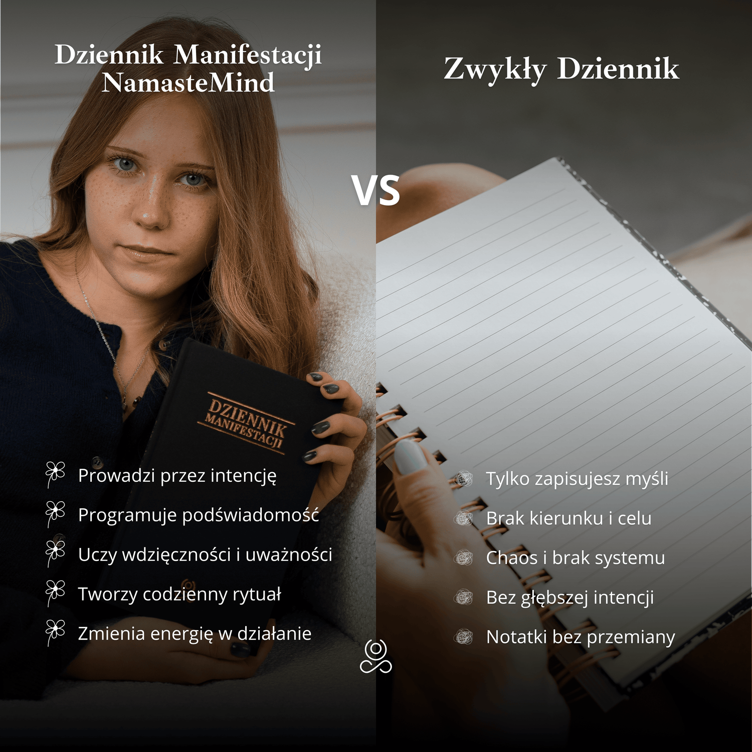 Nie! Chociaż dziennik został stworzony z myślą o manifestacji, jest także doskonałym narzędziem dla każdej osoby, która chce lepiej poznać siebie, rozwijać pozytywne nawyki i wprowadzić więcej uważności do swojego życia. To przestrzeń do pracy z intencjami, refleksji i budowania świadomego podejścia do codzienności.
